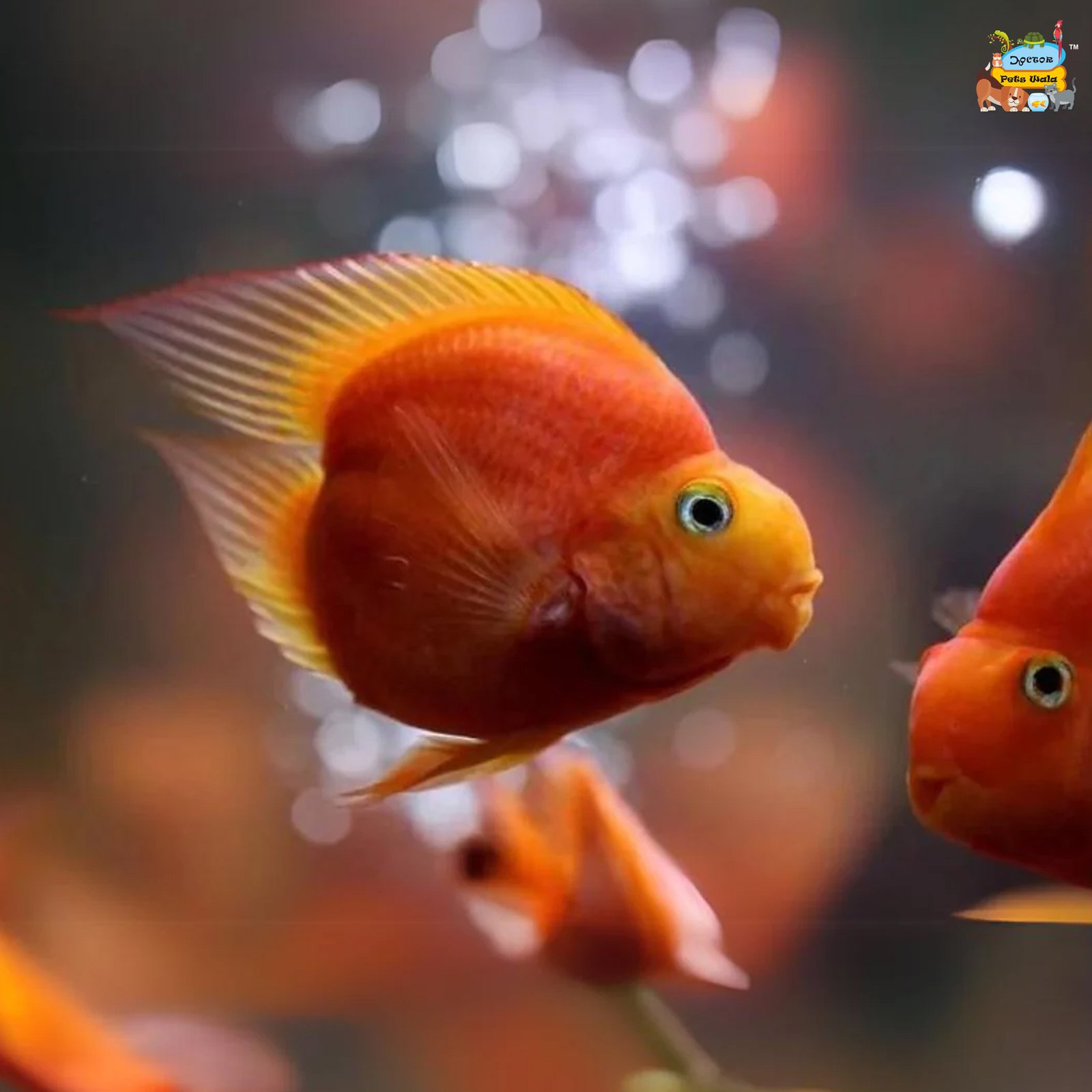 Heart-Shaped Red Parrot Fish – A unique hybrid cichlid with a distinct heart-shaped body and vibrant red coloration. A true showpiece for ornamental aquariums.